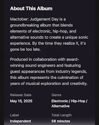 Mactober .. This 16 track masterpiece is not just another collection of beats in rhymes ; it’s a deep dive into issues that resonate with todays world , making this a must listen for anyone looking for music with substance